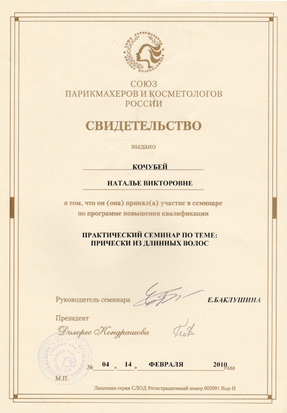 Наталья Кочубей — стилист по волосам, выпускница академии Vidal Sassoon в Лондоне и постоянная участница бьюти-команды шоу «Рогов. Студия 24» с Александром Роговым на канале СТС. Волосы от Кочубей — бренд в мире парикмахеров: работу Натальи всегда легко узнать — живые прозрачные цвета, легкие переходы и авторская техника стрижки Moonshine. На счету Натальи — десятки глянцевых обложек, а еще — множество счастливых женщин. Попробовать изменить себя, сохранив только лучшее, вы можете, записавшись к Наталье на стрижку или окрашивание. А уже состоявшихся стилистов она с удовольствием проконсультирует на мастер-классах. Хотя самый главный ответ она готова дать уже сейчас — на вопрос «Как ты это делаешь?» Наталья всегда отвечает: «С любовью!»